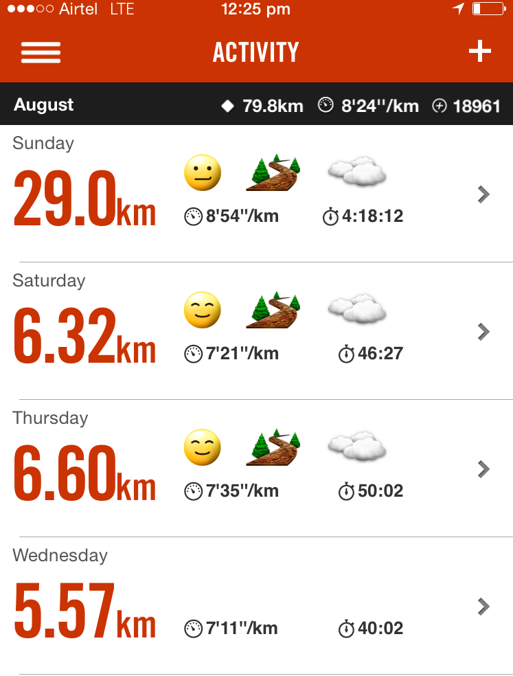 Reached 29km finally. Was hungry as hell. Have run 4 Hours 18 minutes. Longest ever.